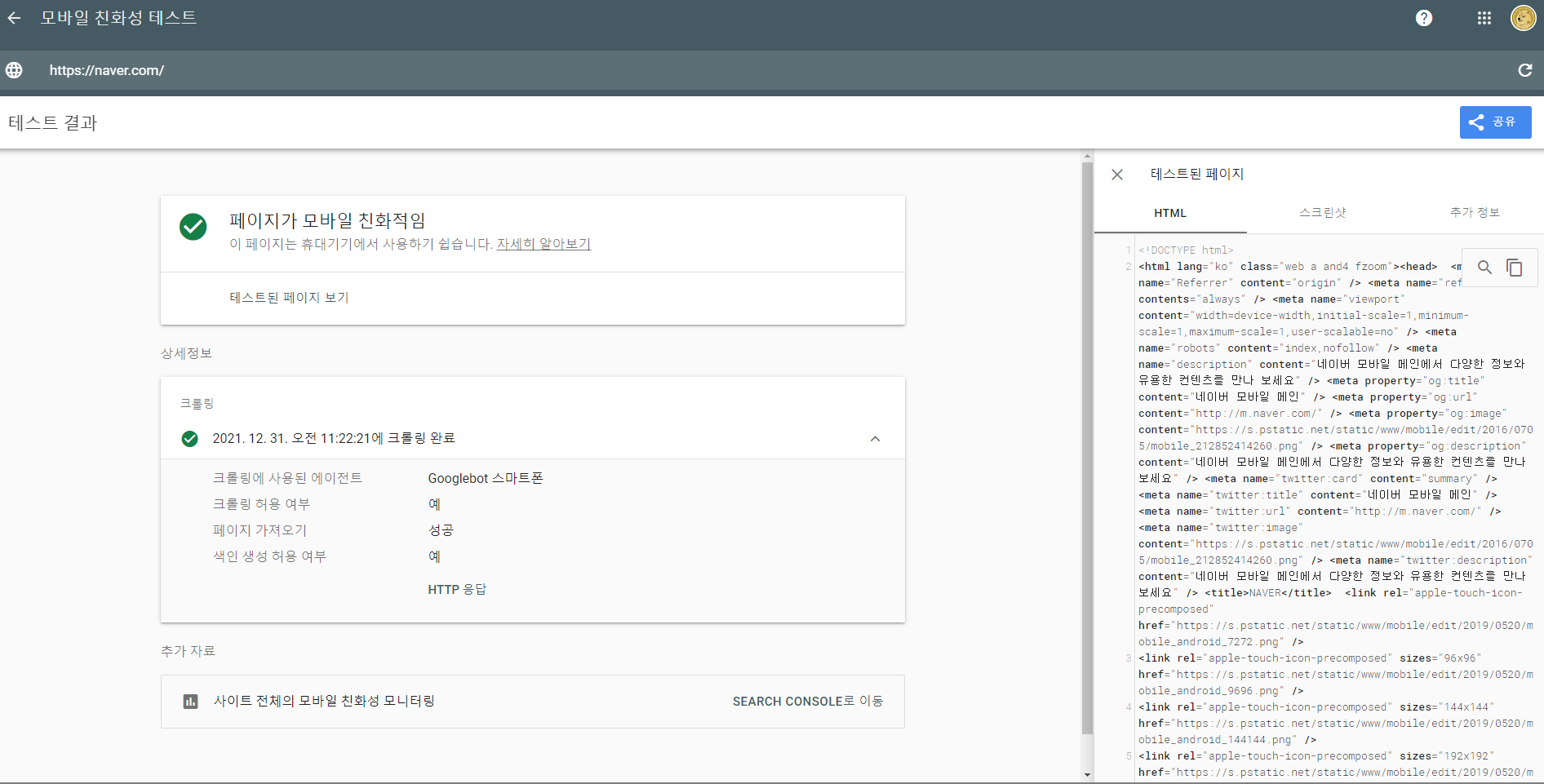 모바일 친화성 테스트 - Google Search Console