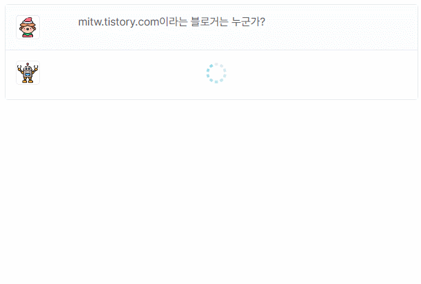"text": "\n\nmitw.tistory.com은 한국의 블로그 플랫폼인 Tistory에서 운영되는 블로그이다. 블로거의 실제 신원은 알 수 없으며, 블로그의 주제는 다양한 IT 기술과 개발 관련 내용을 다루고 있다.",